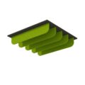 Het akoestische systeemplafondtegel met lamellen is een akoestisch paneel wat je ophangt onder een (systeem) plafond. De lamellen op het plafondeiland zorgen voor een geluidsabsorberend effect. Plaatsing van meerdere plafondeilanden zorgt voor een uitstekende akoestiek in de ruimte.