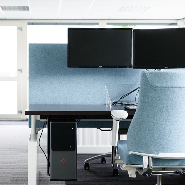 Een goede akoestiek op de werkplek draagt op positieve wijze bij aan de productiviteit. Met deze wanden creëer je rust op de werkplek. Akoestische bureauschermen worden gebruikt om afleidingsprikkels, zoals beweging en geluid op de werkplek te verminderen. Ze zorgen daarmee voor een toename van de concentratie en productiviteit van de gebruiker. Het bureauscherm staat op twee t-poten en is in hoogte te verstellen.