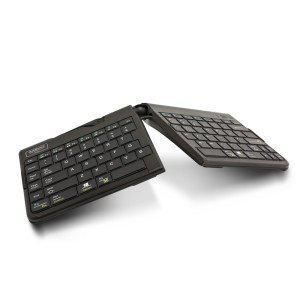 Je kunt het Goldtouch travel QWERTY toetsenbord overal mee naar toe nemen. De toetsgrootte is groot genoeg om ook met grotere vingers goed te kunnen werken. Verkrijgbaar in bedraad of draadloos.
