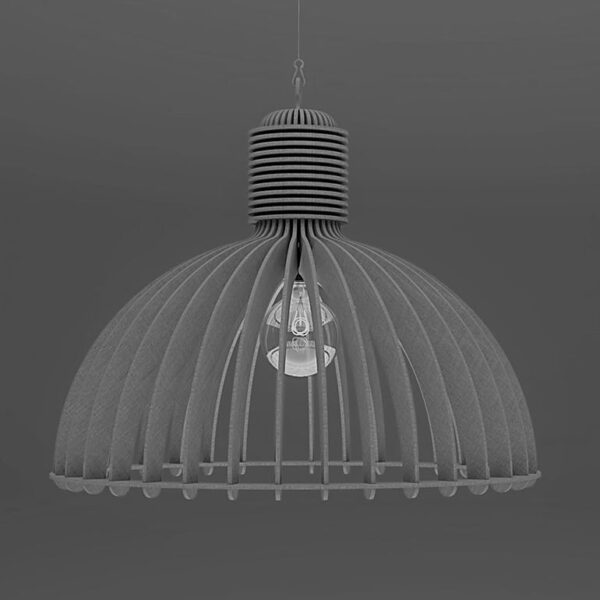 De industriële akoestische lamp is uniek in design en uitvoering. De lamp is gemaakt van 100% gerecycled materiaal. Vanwege de structuur van de vezels van de gerecyclede petflessen is het materiaal zeer sterk en is er geen toevoeging nodig, dit maakt het product 100% recyclebaar.