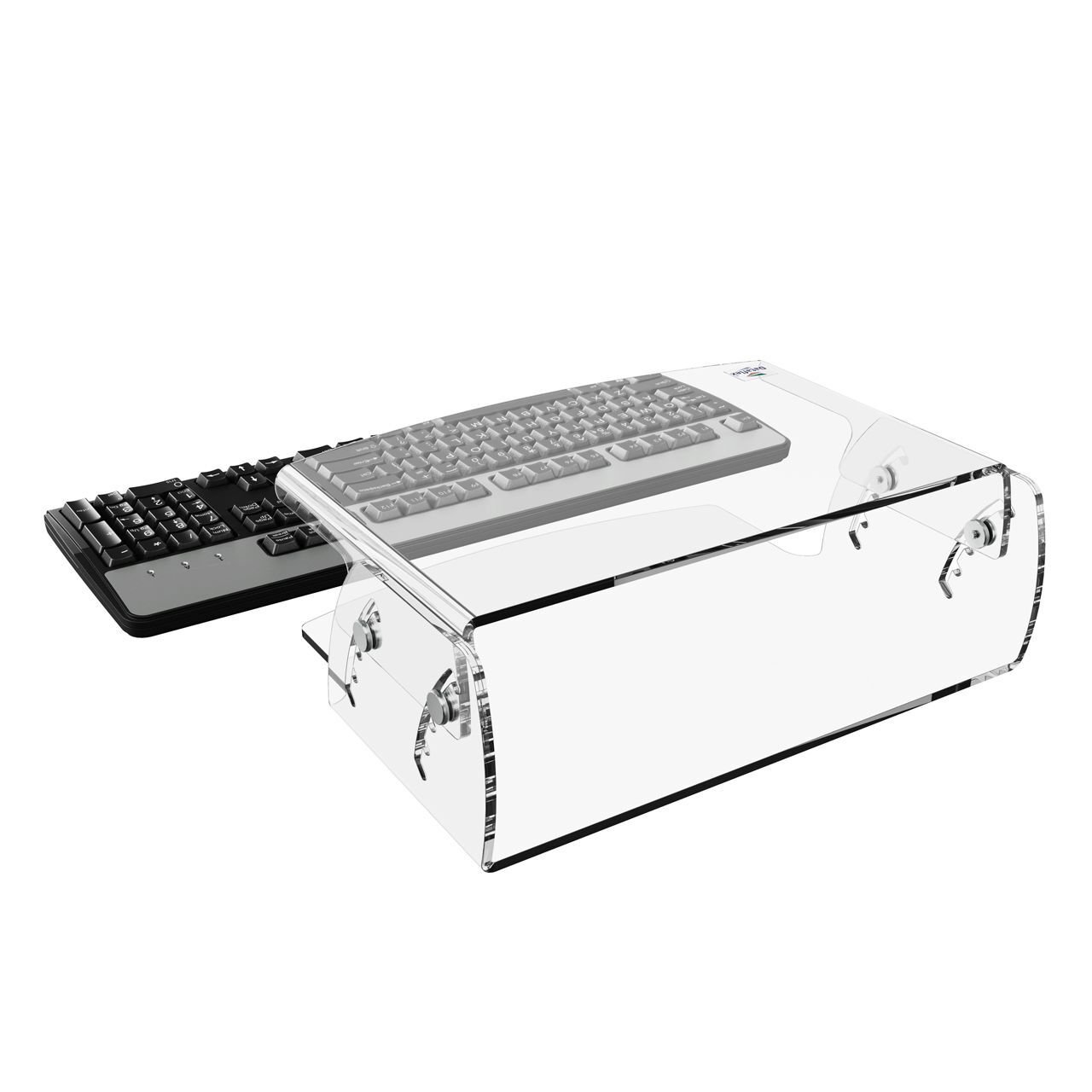 De Monitormate 200 II is vervaardigd uit 5 mm dik helder acryl, wat zorgt voor een stevige en stabiele ondergrond. Dankzij de heldere uitvoering blijft je bureau visueel licht — zonder zware metalen constructie. De maximale draagkracht van 15 kg garandeert dat ook grotere monitors veilig geplaatst kunnen worden.