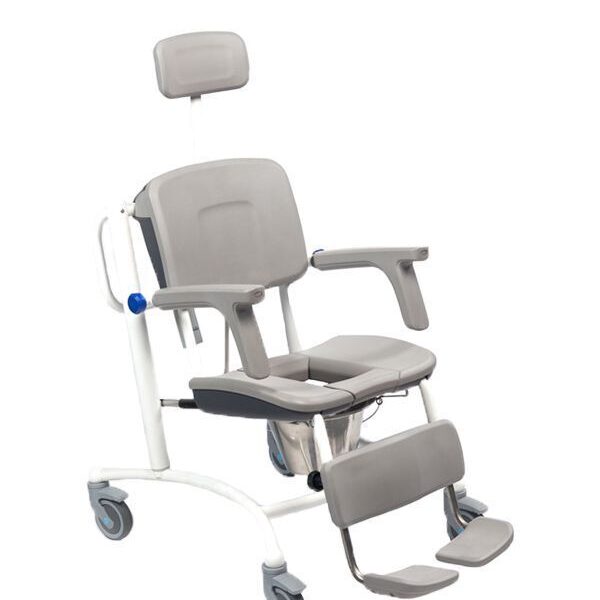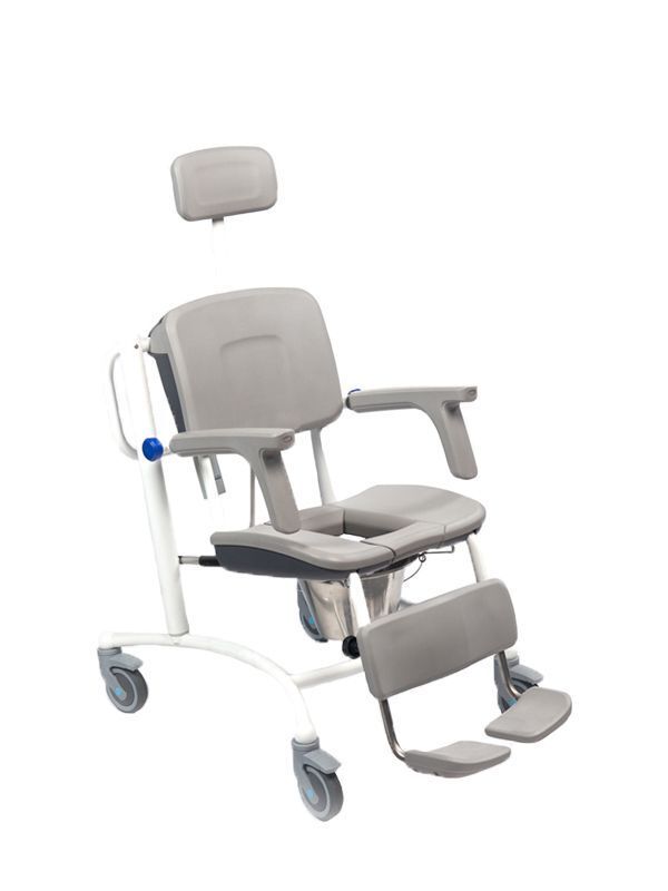 De Noa douchestoel is uitgerust met een elektrische hoog-laag verstelling, waardoor je de stoel moeiteloos op de gewenste hoogte kunt instellen. Dit vermindert de fysieke belasting tijdens de verzorging en verhoogt het comfort voor zowel jou als de patiënt. Dankzij de inline verstelling blijft de stoel zelfs in de hoogste stand uiterst stabiel en veilig.