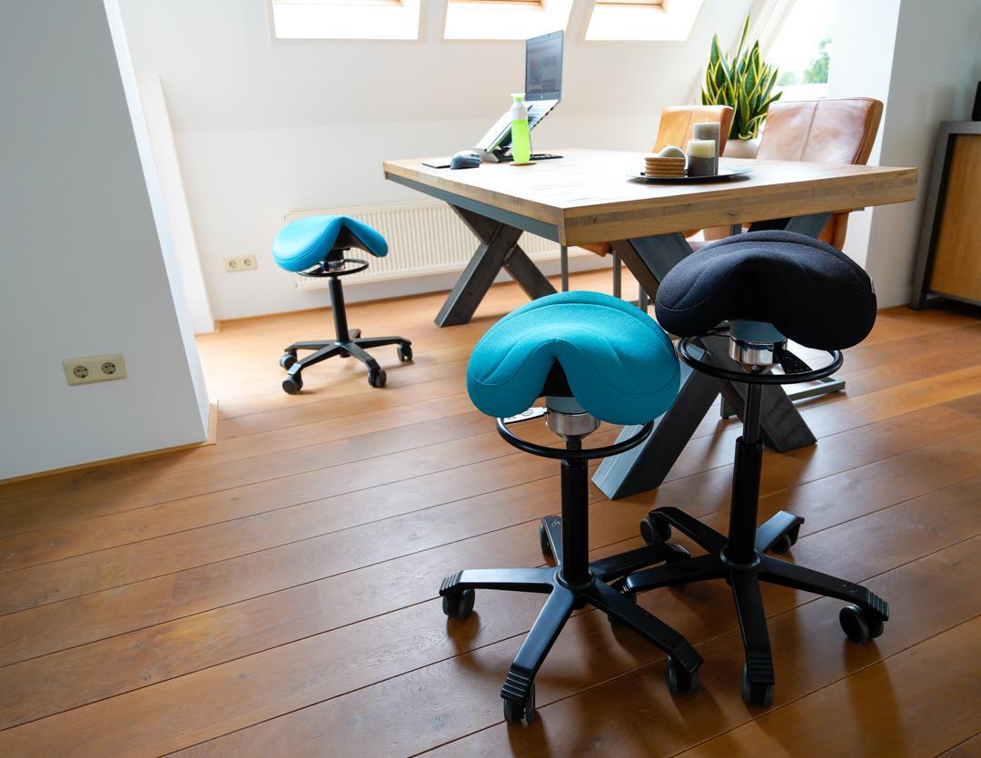 Ergonomische zadelkruk voor een automatisch correcte zithouding. Dynamisch werken thuis of op kantoor was nog nooit zo aangenaam. Hoog zitcomfort door de zadelzitting. Blijf in beweging door het balansmechaniek en voorkom klachten. De Office Amazone wordt standaard geleverd in het zwart: neem voor een andere kleur contact op!