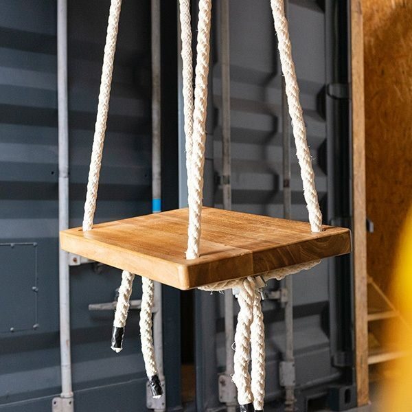 Een schommel is niet een standaard meubel in je kantoor of interieur. Juist daardoor zal dit een echte eyecatcher en beleving zijn. De robuuste haken en het stevige touw welke meegeleverd worden, zijn gemaakt van hergebruikte scheepstouwen en elementen.