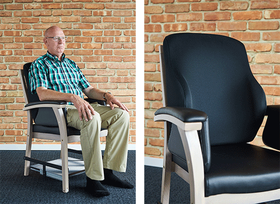 De eetkamers van zorginstellingen worden dagelijks gebruikt door cliënten en hun zorgverlener. Reden te meer om ook deze ruimte in te richten met ergonomische meubels. Onze eetkamerstoelen zijn uit te breiden met handige mechanismes waardoor de zorgverlener de stoel gemakkelijk kan verplaatsen of aanschuiven.