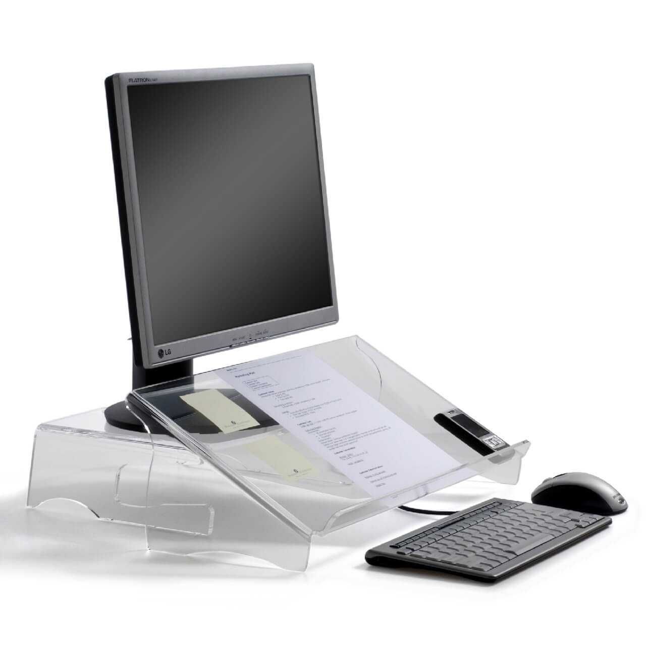Door plaatsing van een documenthouder neemt de productiviteit toe tijdens data-invoer. Daarnaast voorkomt het overbodige belasting van de nek doordat de documenthouder in een lijn staat met je toetsenbord en beeldscherm.