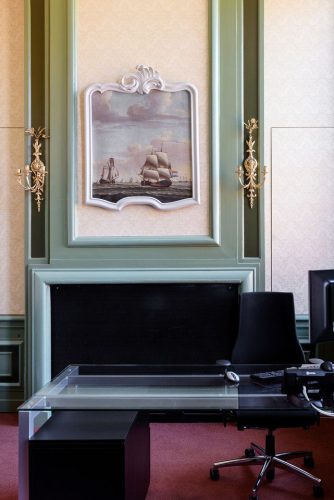 In 2015 en 2016 is het gehele Stadhuis aan de binnenzijde gerestaureerd en in de oorspronkelijke staat en kleuren hersteld. De wens was om de kamer van de wethouder passend in de nieuwe stijl in te richten. De wethouder had voorkeur voor een glazen bureau en een bijpassende vergadertafel, liefst met een luchtfoto van de Gemeente erop.