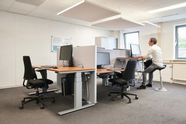 Op het kantoor van Keerpunt wordt veel gebeld, wat storend kan zijn voor collega’s. Daarom hebben we akoestische panelen aan het plafond gemonteerd en plaatsten we akoestische scheidingspanelen bij de bureaus. De werkplekken van de receptionistes hebben een extra plafondpaneel gekregen, namelijk een warmte paneel. Zo kunnen de receptionistes in een aangename temperatuur hun werk doen. Met twee speciaal ontworpen bureaus en een standaardbureau hebben zij optimaal zicht op de entree zodat ze klanten goed kunnen ontvangen.