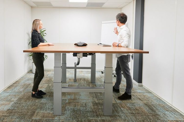 De vergaderzalen zijn voorzien van nieuwe tafels en stoelen. De tafels kunnen omhoog geplaatst worden zodat er staand vergadert kan worden. “Dit maakt de dagelijkse standups zowel energiek als kort en bondig!”, stelt Winne Willems, content specialist bij Keerpunt. Staand vergaderen bevordert de productiviteit en creativiteit én is bijzonder effectief! Om vergaderen gemakkelijker te maken zijn de bureaus voorzien van een uniek mechanisme waarmee een extra presentatiescherm midden in de tafel omhoog en omlaag gebracht kan worden. Vergaderen is een stuk leuker geworden!