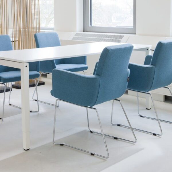 Stel je voor: een vergadering waarin iedereen comfortabel zit, zonder te schuiven, wankelt of ongemak; een ontvangstplek waarin bezoekers direct een goede indruk krijgen, daar draagt deze stoel aan bij.