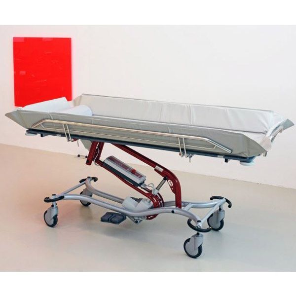 Veelzijdige douchewagen met een binnenlengte van 186 x 71 cm. In hoogte verstelbaar met wegklapbare zijhekken. Rijdt soepel en geeft zorgverlener veel vrijheid om de juiste zorg te verlenen.