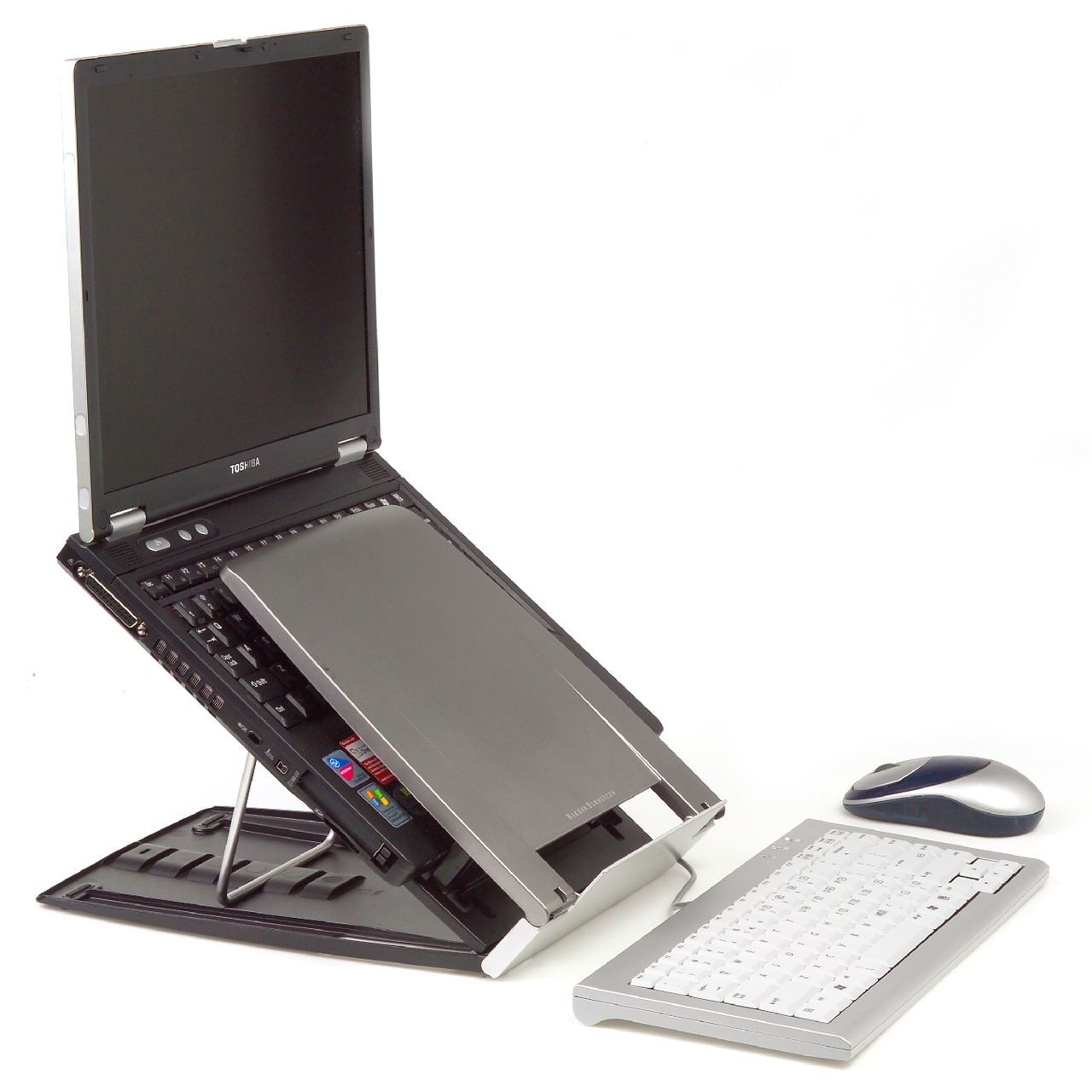De laptophouder is in zes standen instelbaar en goed te vervoeren in een laptoptas. De laptopsteun is voorzien van een documenthouder
