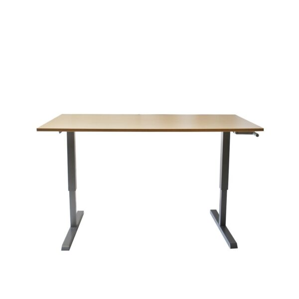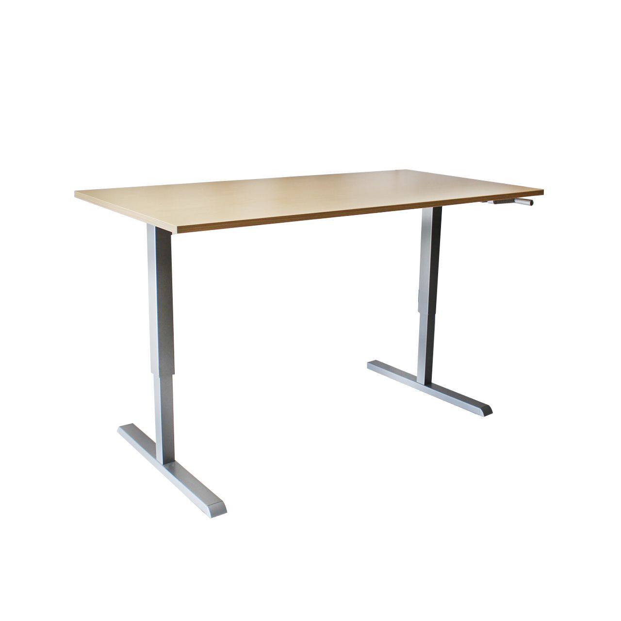 De refurbished Ergodesk SVT is een zit-zit bureau die in hoogte verstelbaar is met behulp van een slinger. Hierdoor kan je makkelijk en snel het bureau naar de gewenste hoogte instellen. De hoogte verstelling heeft een bereik van 64 tot 107 cm. Het bureaublad is in verschillende maten en kleuren verkrijgbaar, het onderstel heeft een zilvergrijze kleur. Het bureau is gerefurbished en volledig gecontroleerd en opgeknapt en werkt perfect.