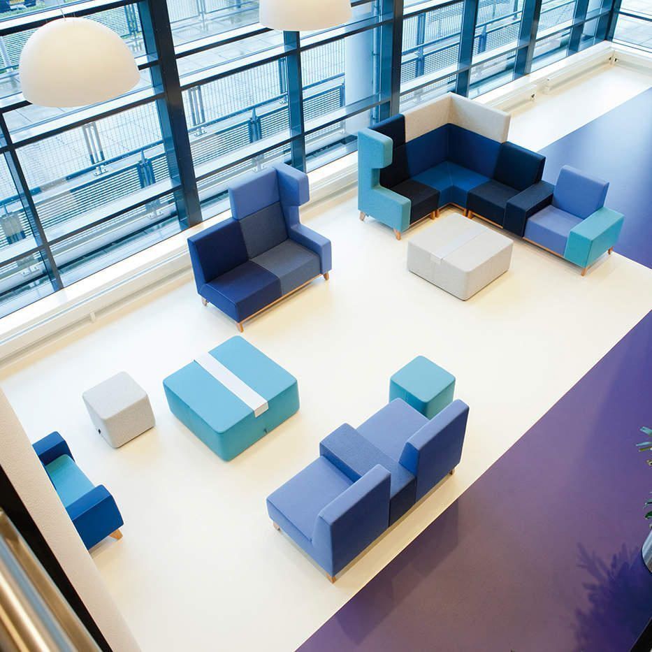 Het Unite akoestisch meubilair is verkrijgbaar in 10 modulen en is in iedere ruimte toepasbaar.